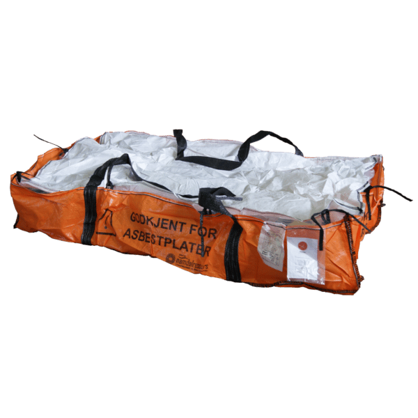 Vi selger big bags som er testet og godkjent for pakking, transportering og deponering av asbestholdig avfall. Sekkene har støvtette sømmer og innersekk.